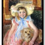 Sara in a Large Flowered Hat Looking Right Holding Her Dog by Mary Cassatt (1902)