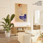Seated Girl with Bare Torso and Light Blue Skirt by Egon Schiele (1911)