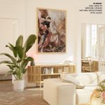 - Material: You can choose between different print mediums (Glicee paper or Canvas) and 40+ framing options that you can see on the website. Any order above 18x24 inches is processed in pinewood since synthetic wood is not able to bear its load. Wherever applicable, acrylic glass is used instead of normal glass, for its ease of handling and recyclability.