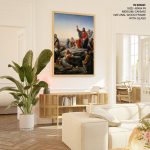 - Material: You can choose between different print mediums (Glicee paper or Canvas) and 40+ framing options that you can see on the website. Any order above 18x24 inches is processed in pinewood since synthetic wood is not able to bear its load. Wherever applicable, acrylic glass is used instead of normal glass, for its ease of handling and recyclability.