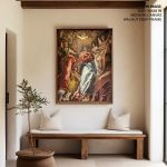 - Material: You can choose between different print mediums (Glicee paper or Canvas) and 40+ framing options that you can see on the website. Any order above 18x24 inches is processed in pinewood since synthetic wood is not able to bear its load. Wherever applicable, acrylic glass is used instead of normal glass, for its ease of handling and recyclability.
