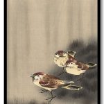 Three Tree Sparrows in a rain shower by Ohara Koson (Unknown)