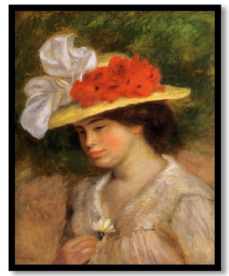 Wall Decor | Woman in a Flowered Hat by Pierre Auguste Renoir (1899) | Custom Size & Frame • Ready to Hang • Made in India • Eco-Friendly