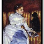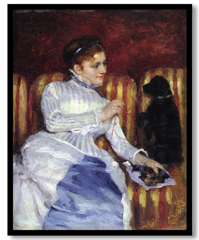 Wall Art | Woman on a Striped Sofa with a Dog by Mary Cassatt (1875) | Small to XXXL Sizes • 50+ Framing Styles • Non Toxic