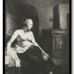 Woman Sitting Half Dressed Beside a Stove by Rembrandt (1658)