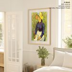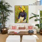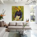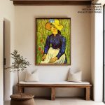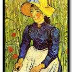 Young Peasant Girl in a Straw Hat sitting in front of a wheatfield by Vincent van Gogh (1890)