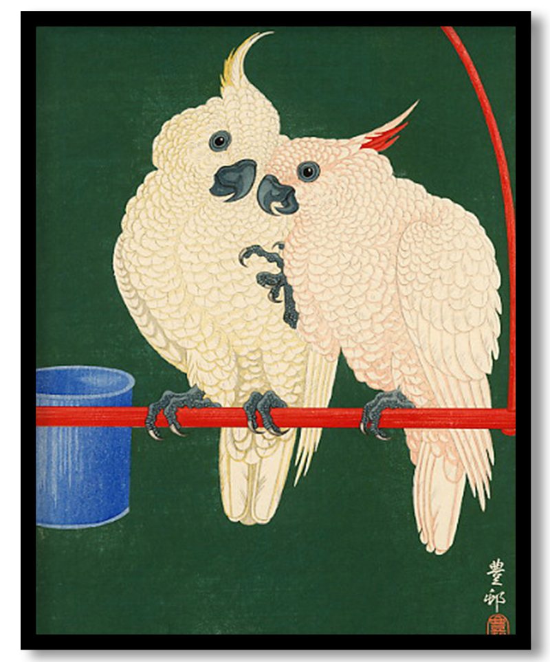 Framed Art | Two White Cockatoos on a Red Bar by Ohara Koson (Unknown) | 50+ Frame Styles • Museum Quality • Made in India