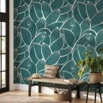 Luxury Wallpaper | Teal wavy stalk | Certified Non Toxic • 14+ Textures • Free Installation