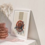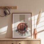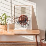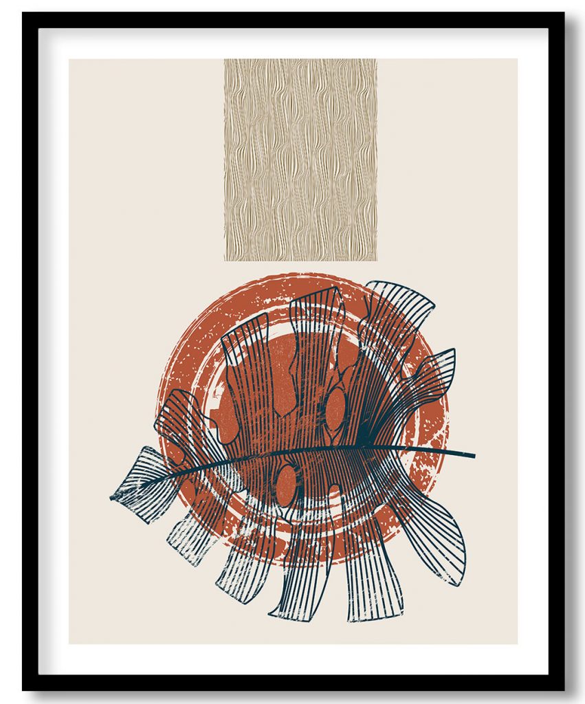 Framed Art | Terracotta spheroid abstract line drawing leaf | 50+ Frame Styles • Museum Quality • Made in India