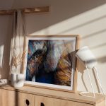 You can wipe it off with microfiber cloth or damp cloth with water and soft soap (shampoo). If your frame has canvas without glass, we recommend simply dust using a dry soft and fine brush. Refrain from using wood polish or cleaning sprays since this could potentially create moisture and possibly damage the artwork.