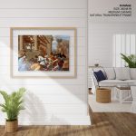 - Material: You can choose between different print mediums (Glicee paper or Canvas) and 40+ framing options that you can see on the website. Any order above 18x24 inches is processed in pinewood since synthetic wood is not able to bear its load. Wherever applicable, acrylic glass is used instead of normal glass, for its ease of handling and recyclability.