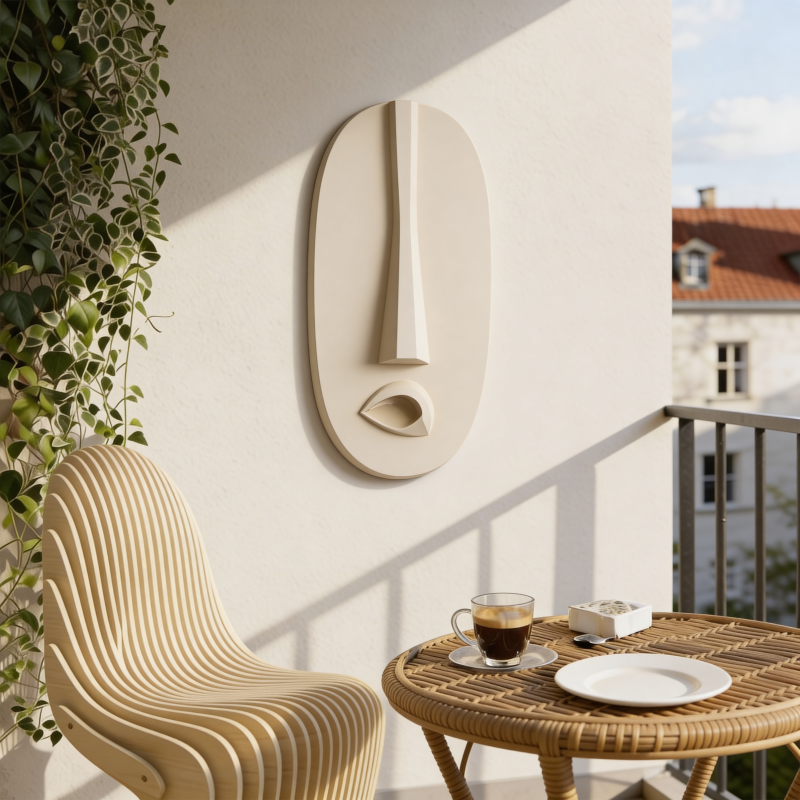 Minimalist 3D wall sculptures inspired by tribal abstraction. Each face captures a quiet emotion — not through expression, but through form.