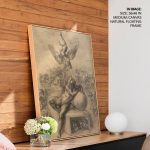- Material: You can choose between different print mediums (Glicee paper or Canvas) and 40+ framing options that you can see on the website. Any order above 18x24 inches is processed in pinewood since synthetic wood is not able to bear its load. Wherever applicable, acrylic glass is used instead of normal glass, for its ease of handling and recyclability.