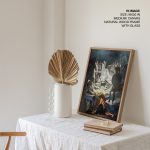 - Material: You can choose between different print mediums (Glicee paper or Canvas) and 40+ framing options that you can see on the website. Any order above 18x24 inches is processed in pinewood since synthetic wood is not able to bear its load. Wherever applicable, acrylic glass is used instead of normal glass, for its ease of handling and recyclability.