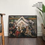 You can wipe it off with microfiber cloth or damp cloth with water and soft soap (shampoo). If your frame has canvas without glass, we recommend simply dust using a dry soft and fine brush. Refrain from using wood polish or cleaning sprays since this could potentially create moisture and possibly damage the artwork.