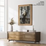 - Material: You can choose between different print mediums (Glicee paper or Canvas) and 40+ framing options that you can see on the website. Any order above 18x24 inches is processed in pinewood since synthetic wood is not able to bear its load. Wherever applicable, acrylic glass is used instead of normal glass, for its ease of handling and recyclability.