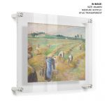 - Material: You can choose between different print mediums (Glicee paper or Canvas) and 40+ framing options that you can see on the website. Any order above 18x24 inches is processed in pinewood since synthetic wood is not able to bear its load. Wherever applicable, acrylic glass is used instead of normal glass, for its ease of handling and recyclability.
