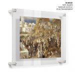 - Material: You can choose between different print mediums (Glicee paper or Canvas) and 40+ framing options that you can see on the website. Any order above 18x24 inches is processed in pinewood since synthetic wood is not able to bear its load. Wherever applicable, acrylic glass is used instead of normal glass, for its ease of handling and recyclability.