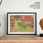 - Material: You can choose between different print mediums (Glicee paper or Canvas) and 40+ framing options that you can see on the website. Any order above 18x24 inches is processed in pinewood since synthetic wood is not able to bear its load. Wherever applicable, acrylic glass is used instead of normal glass, for its ease of handling and recyclability.