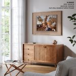 - Material: You can choose between different print mediums (Glicee paper or Canvas) and 40+ framing options that you can see on the website. Any order above 18x24 inches is processed in pinewood since synthetic wood is not able to bear its load. Wherever applicable, acrylic glass is used instead of normal glass, for its ease of handling and recyclability.