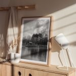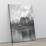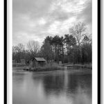 Wall Decor | Tiny Wood House In Mid Lake | Custom Size & Frame • Ready to Hang • Made in India • Eco-Friendly