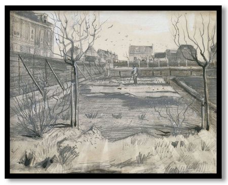 Trees and Meadows at Eragny is a black chalk drawing on originally pale pink laid paper created by Camille Pissarro in 1895/1900. The overall dimensions of the artwork are 30.8 x 47.5 cm (12 1/8 x 18 11/16 in.). The provenance of the artwork