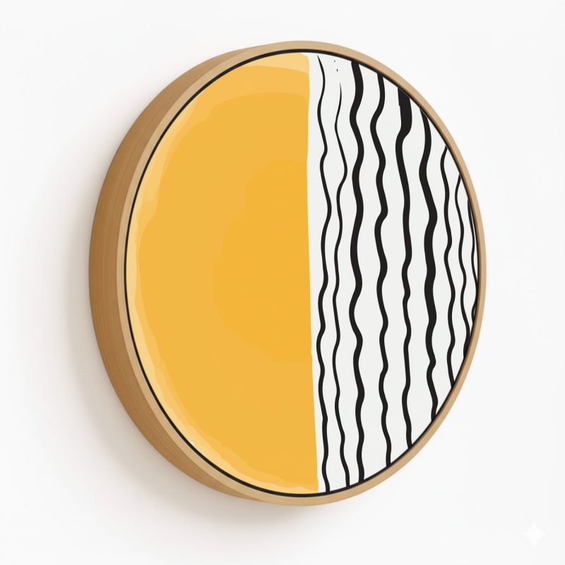 Wall Decor | Trendy doodle boho line drawing #602 - Circular Wooden Frame | Custom Size & Frame • Ready to Hang • Made in India • Eco-Friendly