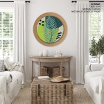 Tropical palm plants #235 - Circular Wooden Frame