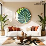 Wall Decor | Tropical palm plants #237 - Circular Wooden Frame | Custom Size & Frame • Ready to Hang • Made in India • Eco-Friendly