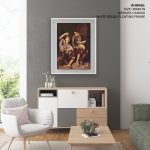 - Material: You can choose between different print mediums (Glicee paper or Canvas) and 40+ framing options that you can see on the website. Any order above 18x24 inches is processed in pinewood since synthetic wood is not able to bear its load. Wherever applicable, acrylic glass is used instead of normal glass, for its ease of handling and recyclability.