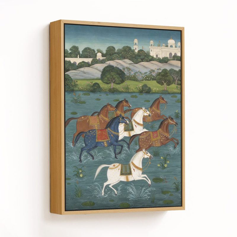 Wall Decor | Galloping Elegance by the Riverside | Custom Size & Frame • Ready to Hang • Made in India • Eco-Friendly