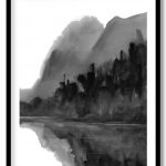 Framed Art | Watercolor black ink abstract landscape #121 | 50+ Frame Styles • Museum Quality • Made in India