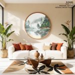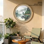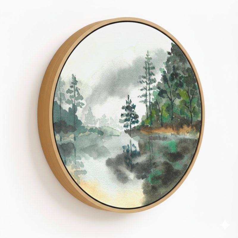 Wall Art | Watercolor river landscape - Circular Wooden Frame | Small to XXXL Sizes • 50+ Framing Styles • Non Toxic