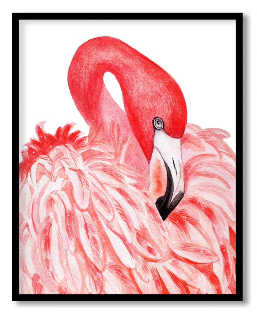 Wall Art | Watercolor tropical flamingo | Small to XXXL Sizes • 50+ Framing Styles • Non Toxic