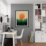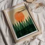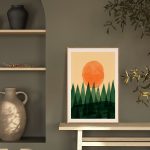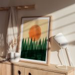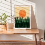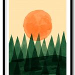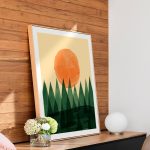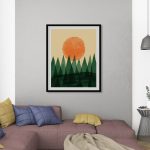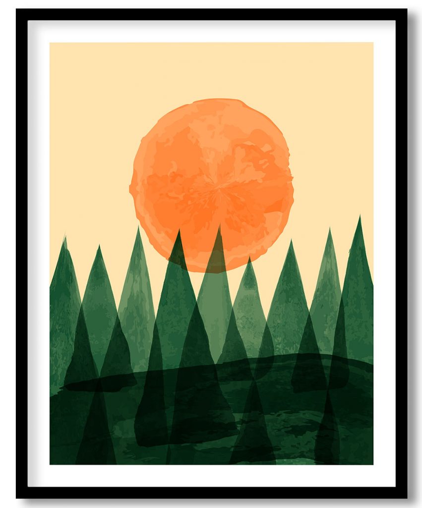 Wall Art | Watercolored Trees and Sun | Small to XXXL Sizes • 50+ Framing Styles • Non Toxic