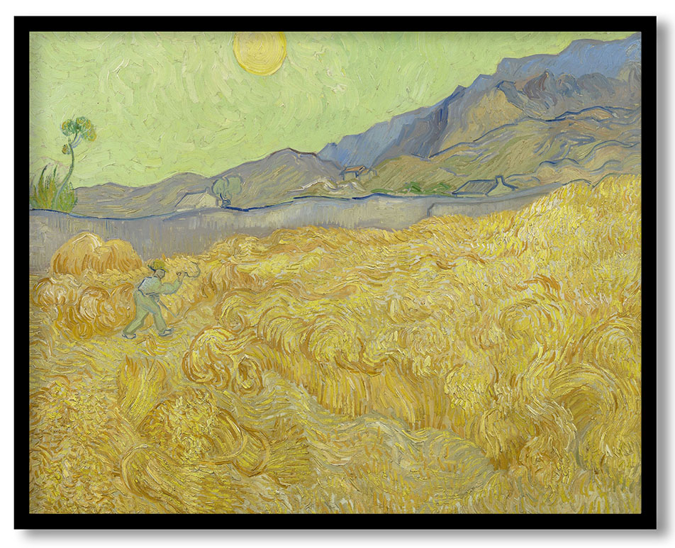 Wall Decor | Wheatfield with a reaper by Vincent van Gogh (September 1889-1889) | Custom Size & Frame • Ready to Hang • Made in India • Eco-Friendly