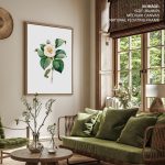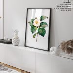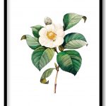 White Japanese camellia flower botanical by Pierre Joseph Redouté