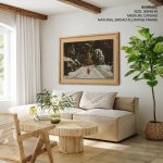 - Material: You can choose between different print mediums (Glicee paper or Canvas) and 40+ framing options that you can see on the website. Any order above 18x24 inches is processed in pinewood since synthetic wood is not able to bear its load. Wherever applicable, acrylic glass is used instead of normal glass, for its ease of handling and recyclability.
