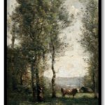 Wall Decor | Wooded Landscape with Cows in a Clearing by Jean Baptiste Camille Corot (1855) | Custom Size & Frame • Ready to Hang • Made in India • Eco-Friendly