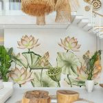 Pastel Lotus Serenade - Non Toxic Wall Paper Decor, Home & Office Decor - BestOfBharat