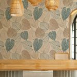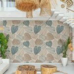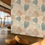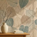 Leafy Serenade in Beige and Blue - Non Toxic Wall Paper Decor, Home & Office Decor - BestOfBharat