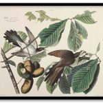 Yellow Billed Cuckoo. Coccyzus carolinensis, Plant Popaw porceliatriloba. by John James Audubon (1827)