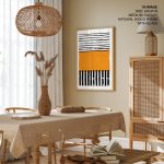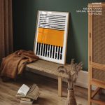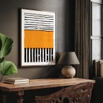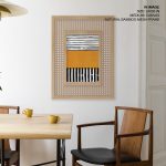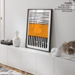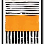 Yellow black distressed line drawing abstract geometry shapes mid century Scandinavian