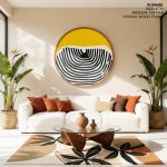 Wall Art | Yellow groovy abstract - Circular Wooden Frames | Small to XXXL Sizes • 50+ Framing Styles • Non Toxic