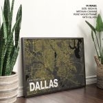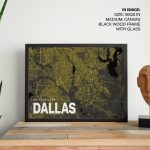 Wall Decor | Yellow poster map of dallas | Custom Size & Frame • Ready to Hang • Made in India • Eco-Friendly