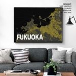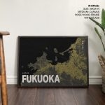Framed Art | Yellow poster map of fukuoka | 50+ Frame Styles • Museum Quality • Made in India