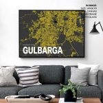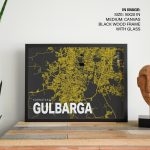 Wall Art | Yellow poster map of gulbarga | Small to XXXL Sizes • 50+ Framing Styles • Non Toxic