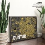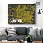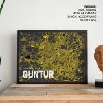 Framed Art | Yellow poster map of guntur | 50+ Frame Styles • Museum Quality • Made in India