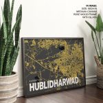 Framed Art | Yellow poster map of hublidharwad | 50+ Frame Styles • Museum Quality • Made in India