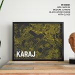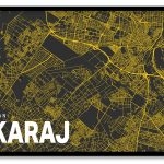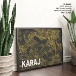 Framed Art | Yellow poster map of karaj | 50+ Frame Styles • Museum Quality • Made in India